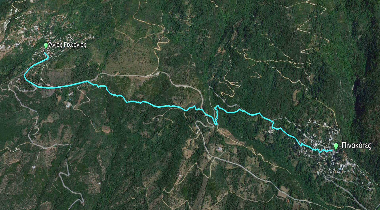 Η επαρχιακή οδός Αγίου Γεωργίου-Πινακατών έχει θέσει εκτός χρήσης τον παλό ημιονικό δρόμο ανάμεσα στα δύο πανέμορφα χωριά του Δυτικού Πηλίου. Ευτυχώς, χάρη στη χάραξη του δρόμου, έχουν απομείνει τρία ανέπαφα σκέλη του μονοπατιού και έτσι η σύνδεση Πινακάτες-Άγιος Γεώργιος μπορεί να γίνει πεζοπορικά, παρόλη την παρεμβολή τμημάτων ασφάλτου.